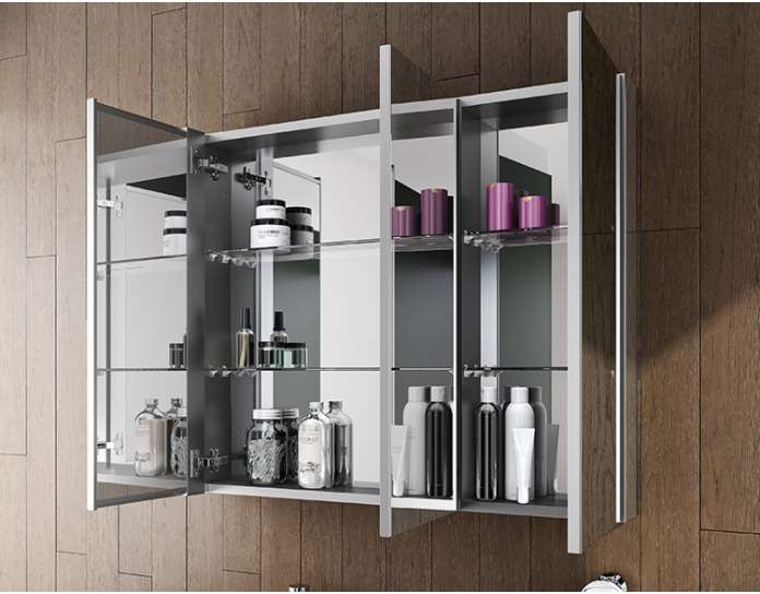These are usually placed over your sink, and the storage space is recessed into the wall, so the cabinet doesn’t take a square inch of space inside your bathroom! If you get one with a mirror, that contributes to an even greater sense of spaciousness.